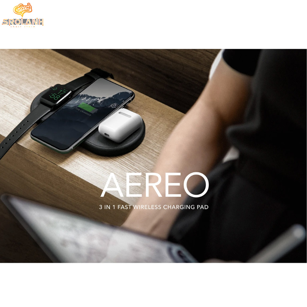 UNIQ Aereo Plus 3 in 1 Fast Wireless Charger ជាប្រភេទ Wireless Charge កម្លាំងសាក 10W អាចសាកប្រភេទទូរស័ព្ទគ្រប់ម៉ូតដែល Support ការសាក Wireless, Airpods នាឡិកាបានក្នុងពេលតែមួយ មានសុវត្ថិភាពនិងងាយស្រួលប្រើប្រាស់ប្រចាំថ្ងៃ។