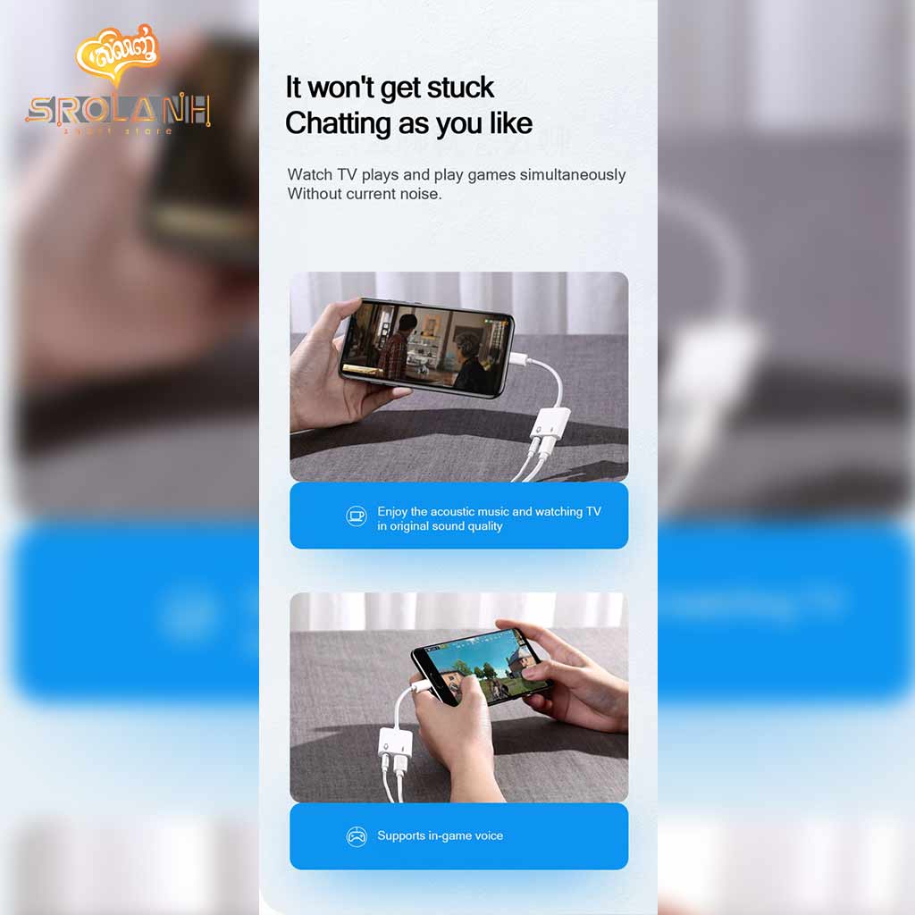 ជាប្រភេទ HUB Lightning to 3.5mm+Lightning របស់ Joyroom អាចប្រើសាកថ្មុ, ស្តាប់ចម្រៀង, និយាយទូរស័ព្ទ និង លេងហ្កេមបានក្នុងពេលតែមួយ ហើយខ្សែមានប្រវែង 120mm។