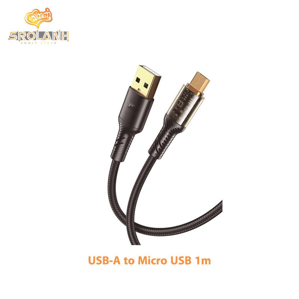 ជាប្រភេទខ្សែសាក USB-A to Micro របស់ XO កម្លាំងសាក 2.4A រចនាបទថ្មី Transparent Design មើលឃើញដល់ផ្ទៃខាងក្នុងនិងខ្សែមានប្រវែង 1M។